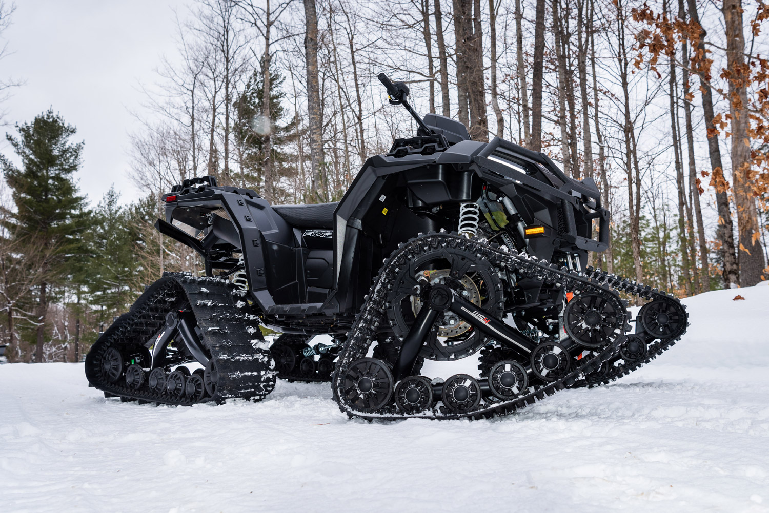 While this might signal end of riding for some, it’s just the beginning of having fun for those equipped with a track kit.