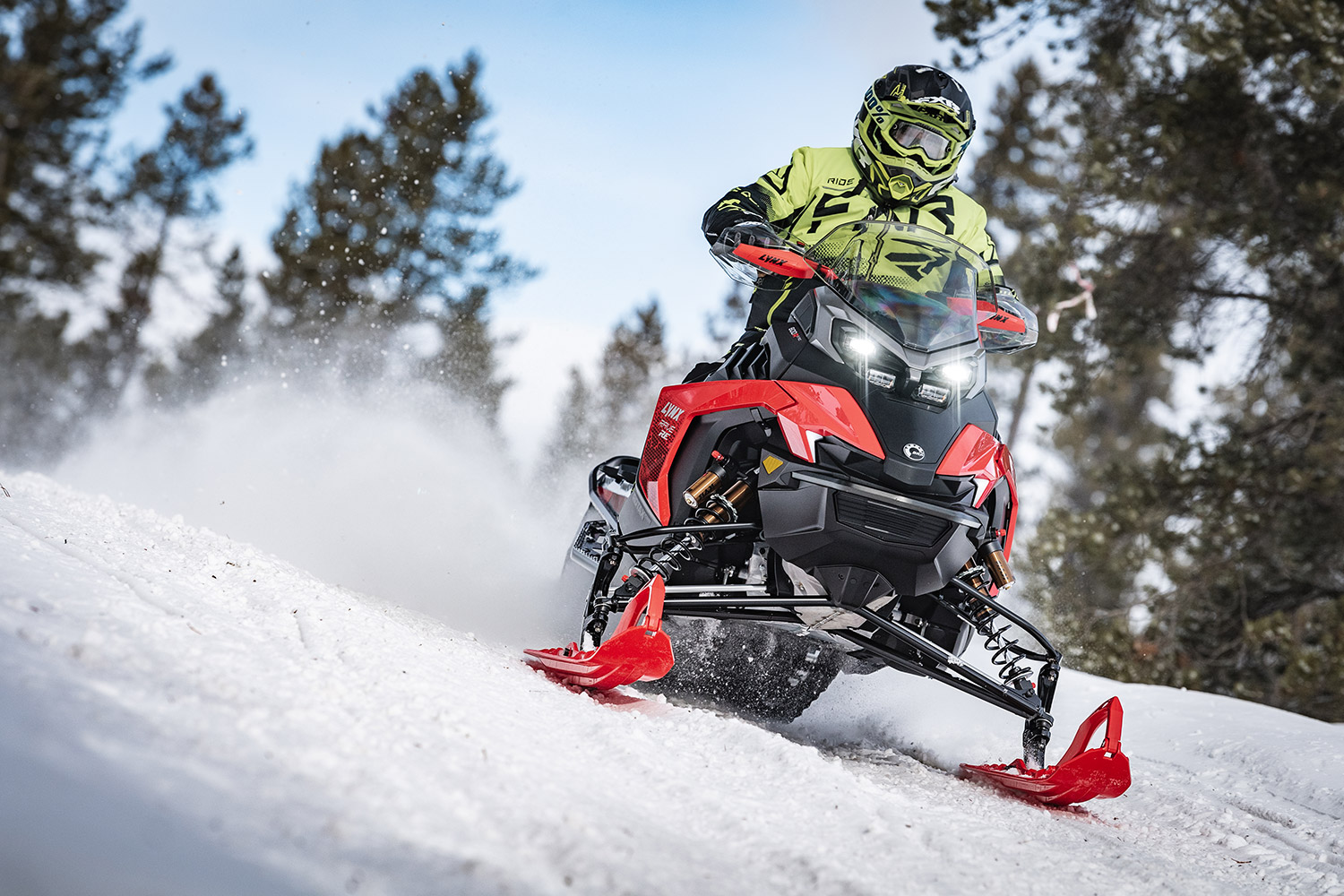 Snowmobiling in Scandinavia is fundamentally different than trail-based riding here in parts of North America and Lynx snowmobiles are designed to accommodate full-throttle roosts on ungroomed trails. The PPS³ suspension uses lots of travel but does not employ coupling, which means the RAVE RE will wheelie through rough terrain with skis off the snow. The sled responds to rider fore and aft movements telepathically. Frankly, the uncoupled nature of the PPS³ system creates a near “dirt bike-ish” response to rough trails.